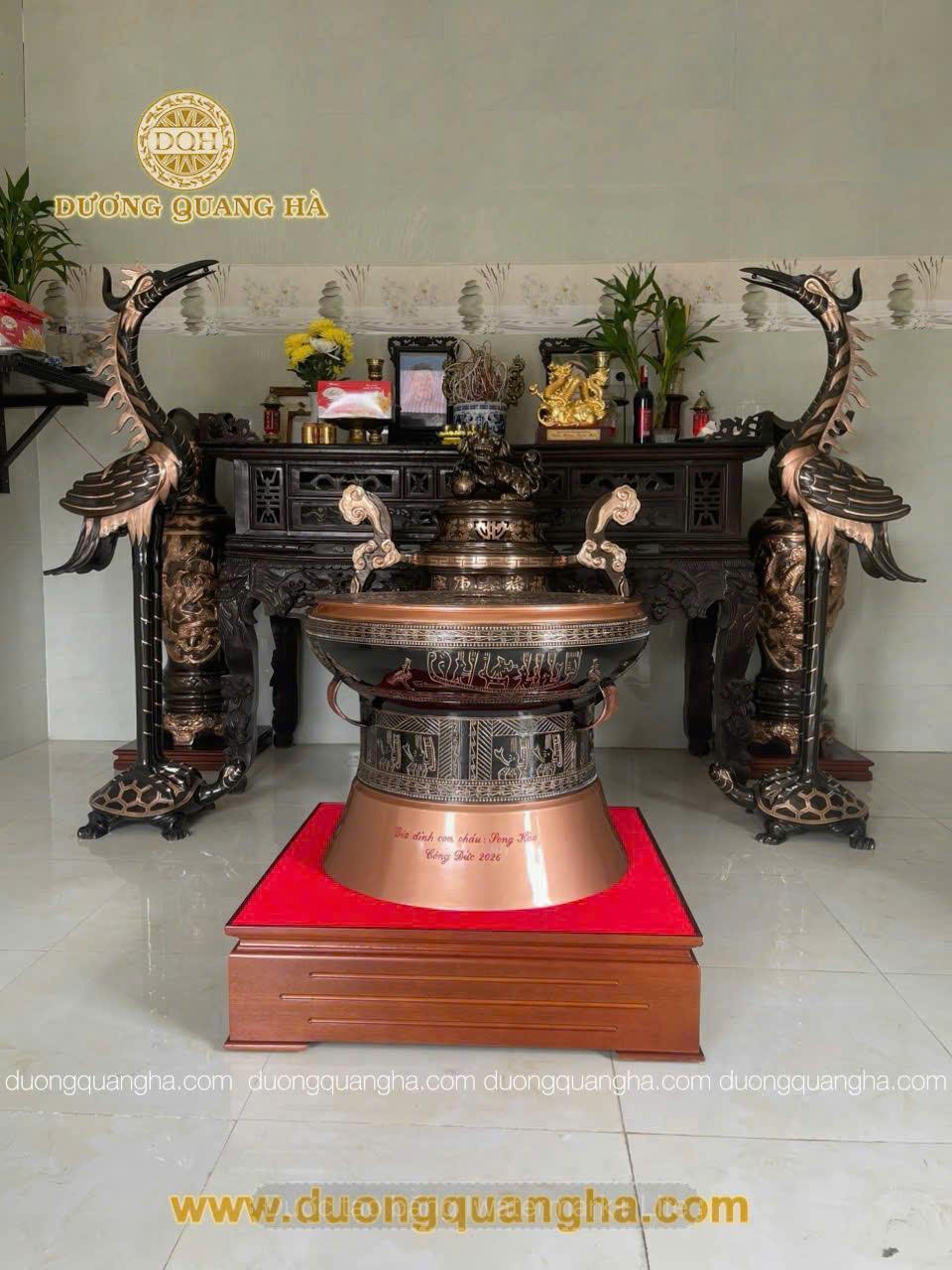 BÀN GIAO ĐỈNH TAI MÂY + QUẢ TRỐNG + ĐÔI HẠC + ĐÔI LỌ LỘC BÌNH HÀNG ĐỒNG ĐỎ CHẤT LƯỢNG CHO KHÁCH HÀNG THANH HOÁ