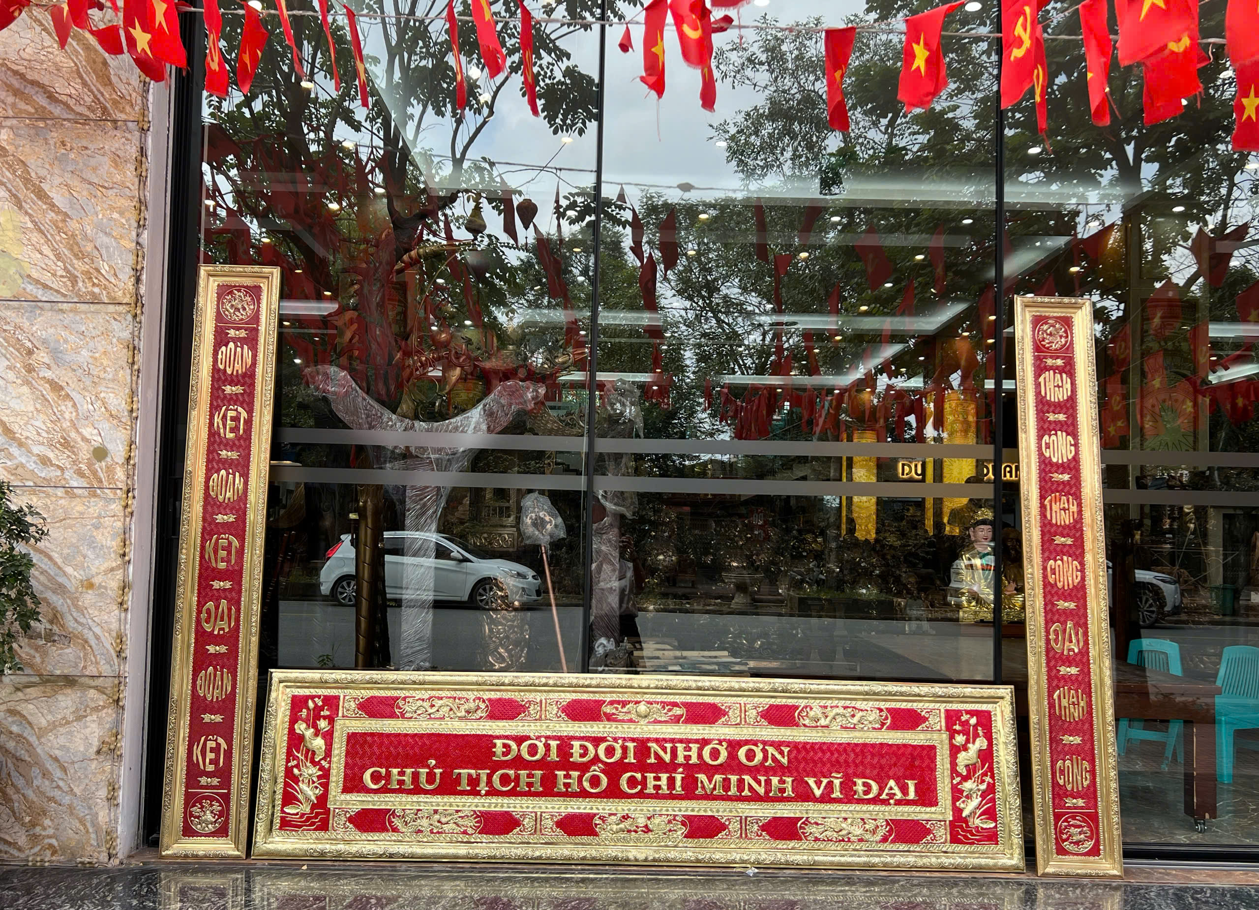 HOÀN THIỆN BỘ ĐẠI TỰ DÀI 3M3 + CÂU ĐỐI 3M DÁT VÀNG 9999