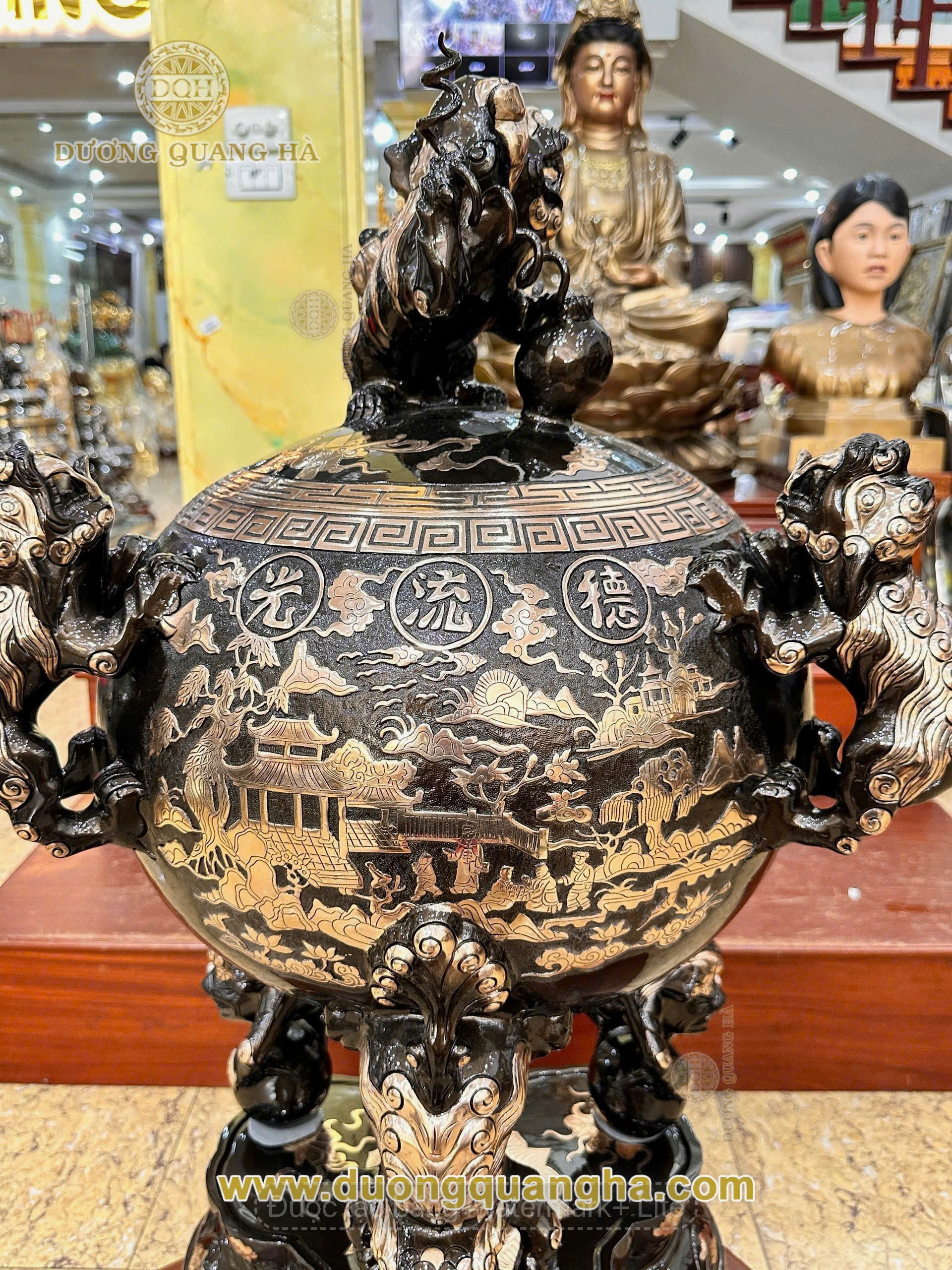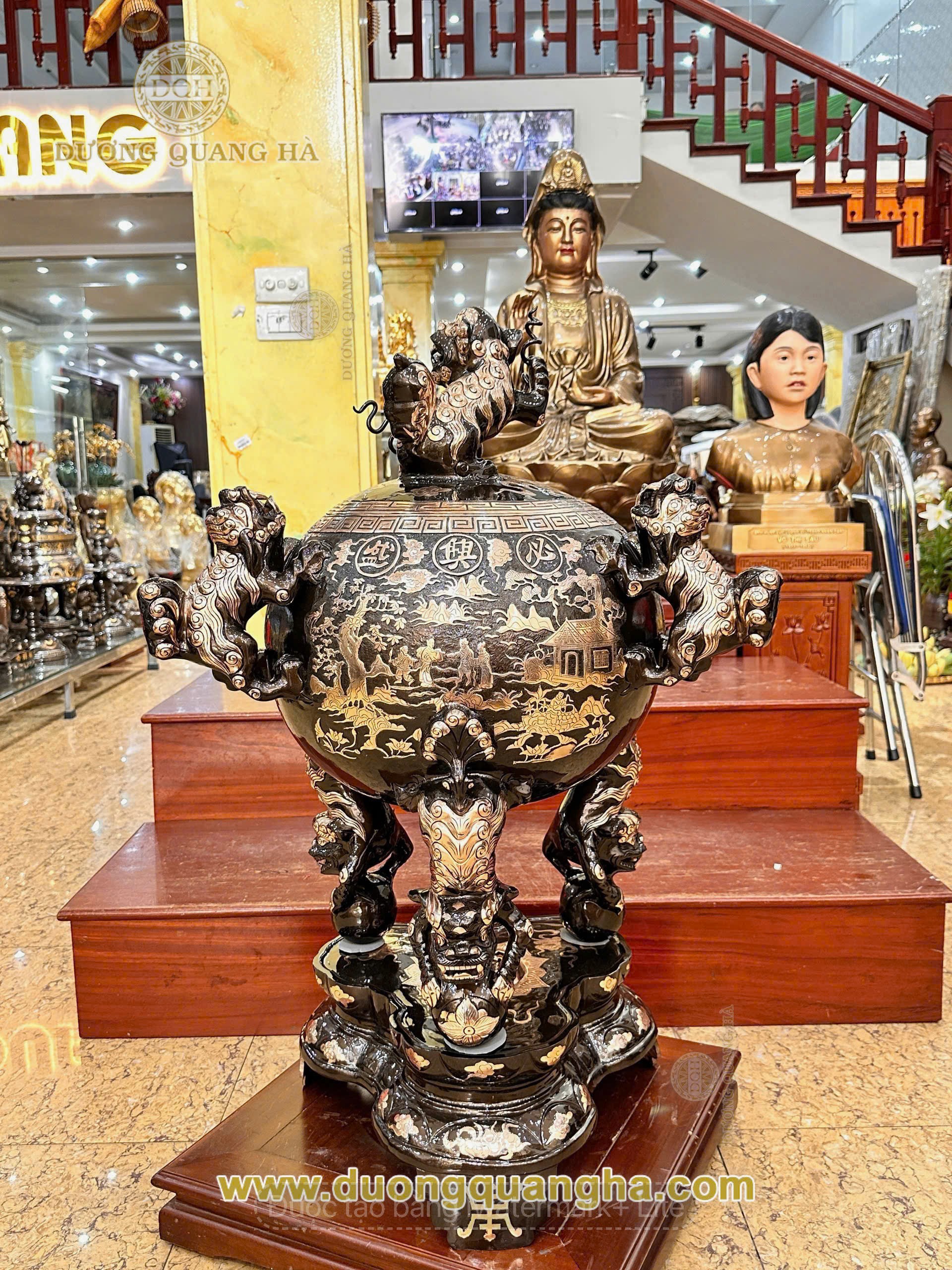 Tóm tắt về sản phẩm: Tất cả sản phẩm được đúc, gia công chế tác, chạm khảm tất cả đều được làm thủ công bằng tay mỗi sản phẩm thực sự là một tác phẩm đồng mỹ nghệ tinh xảo đến mức cao nhất, với những đường nét lưu loát, có giá trị thực sự cao của những nghệ nhân, những người thợ tài hoa từ làng nghề đúc đồng XÃ Ý YEN TTINHR NINH BÌNH