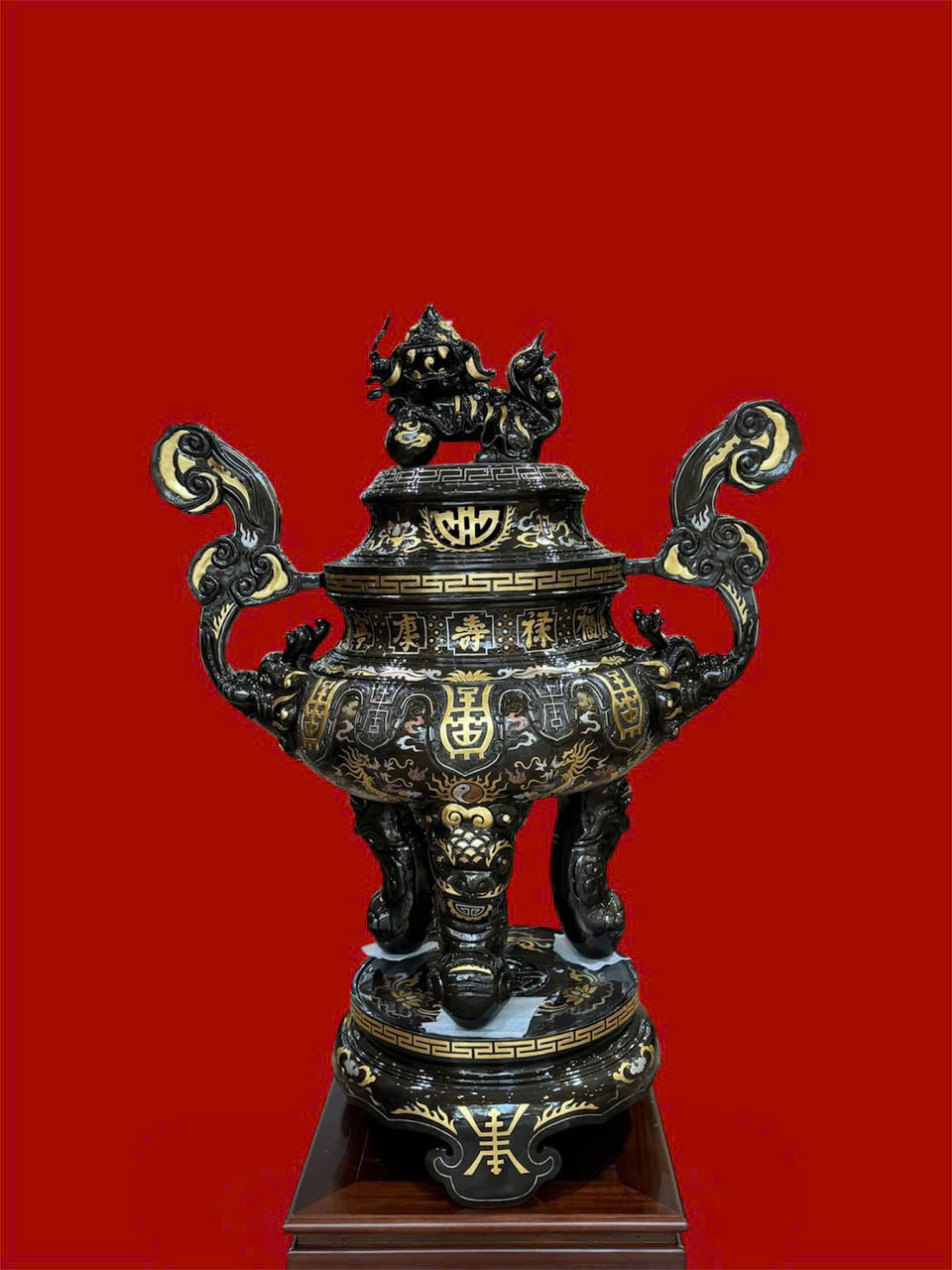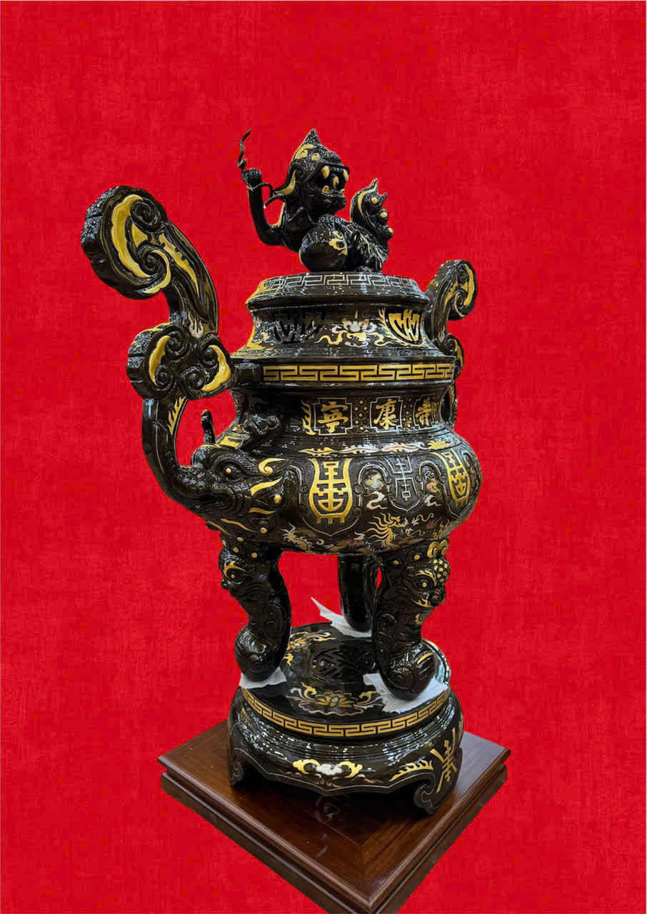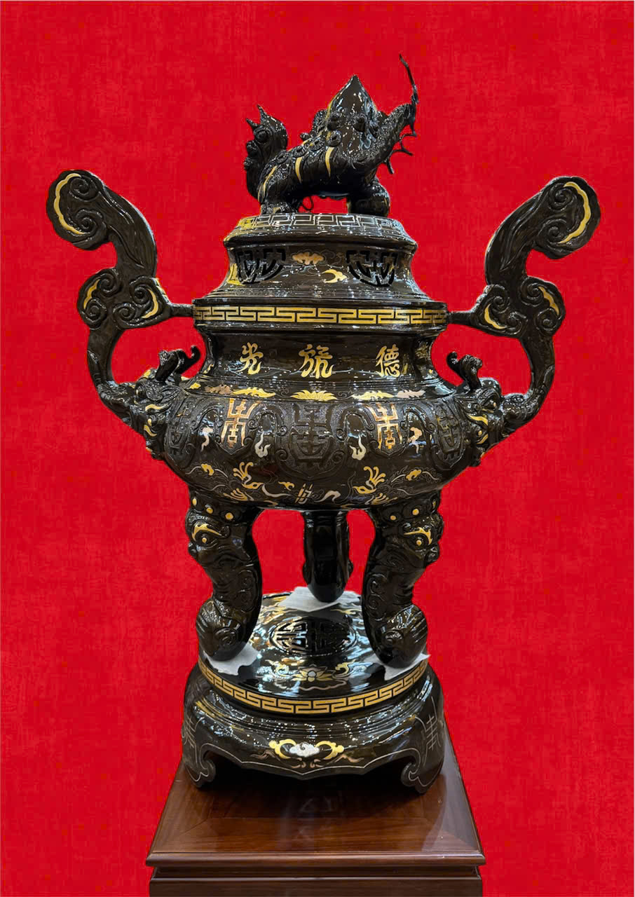 HOÀN THIỆN ĐỈNH TAI MÂY 1M17 KHẢM DÁT ĐIỂM VÀNG ĐỒNG ĐỎ CAO CẤP