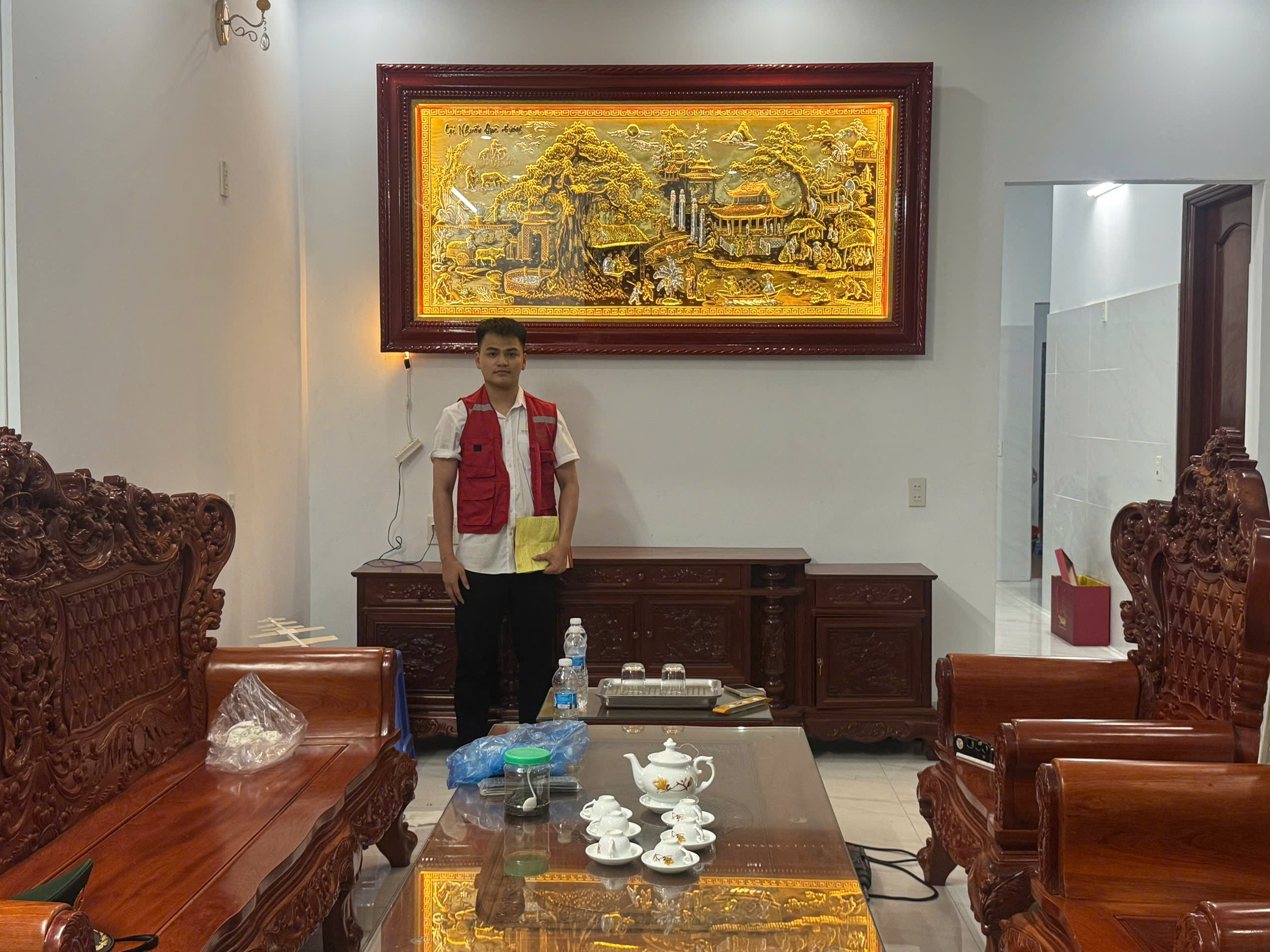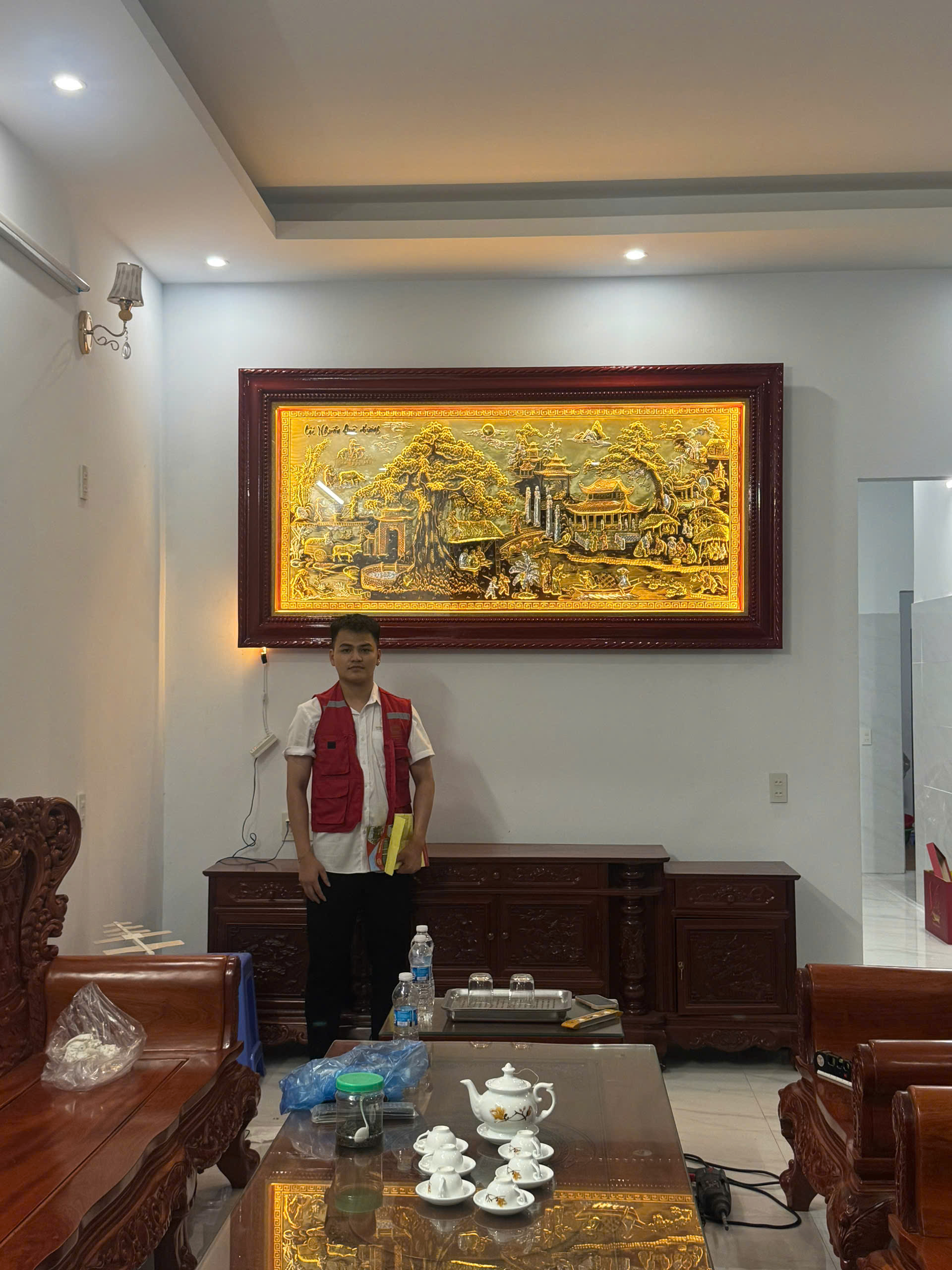 LẮP ĐẶT TRANH 1M2 X 2M3 KHẢM DÁT ĐIỂM VÀNG CHO QUÝ KHÁCH TẠI TP HẢI DƯƠNG