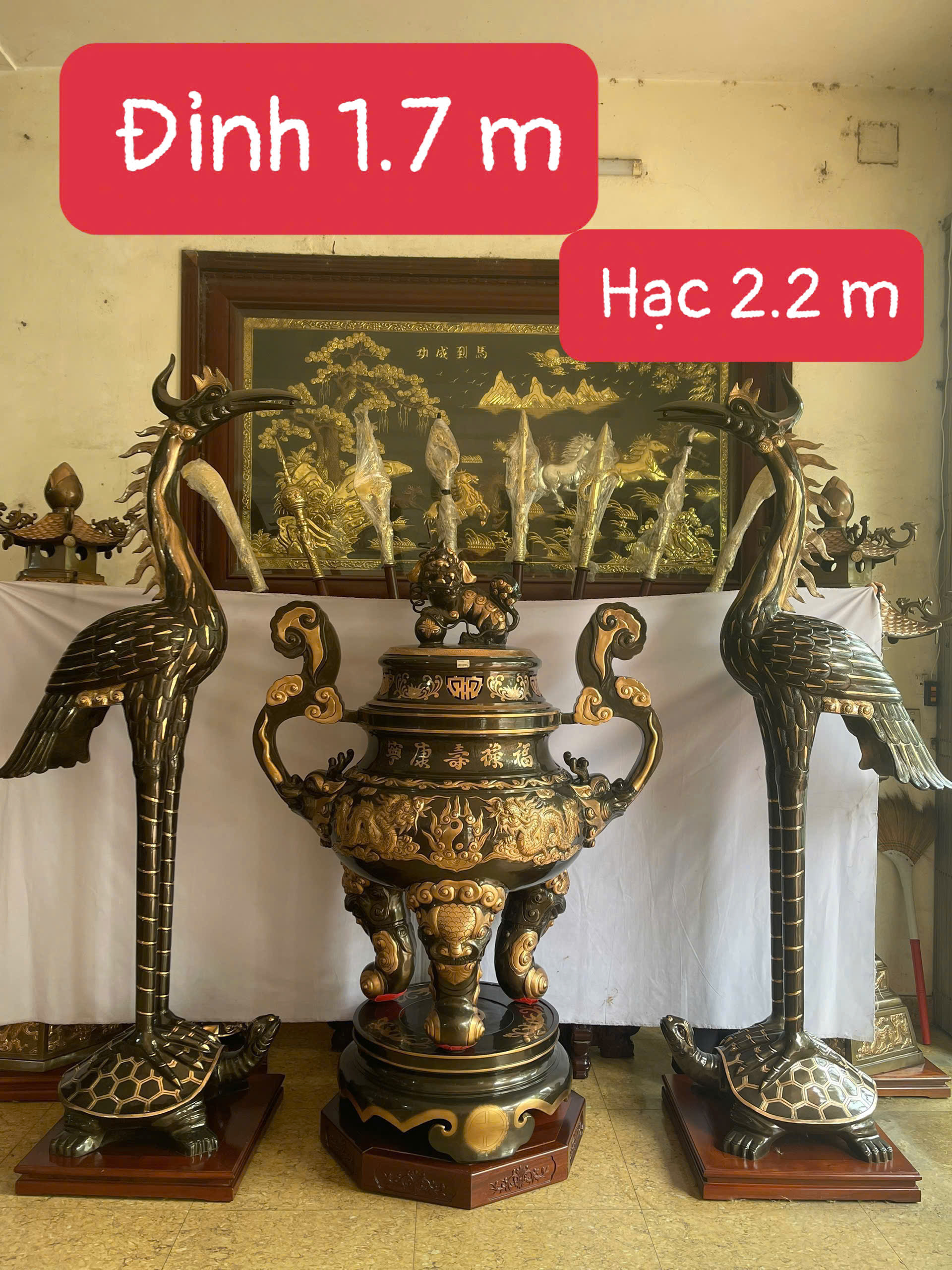 Tóm tắt về sản phẩm: Tất cả sản phẩm được đúc, gia công chế tác, chạm khảm tất cả đều được làm thủ công bằng tay mỗi sản phẩm thực sự là một tác phẩm đồng mỹ nghệ tinh xảo đến mức cao nhất, với những đường nét lưu loát, có giá trị thực sự cao của những nghệ nhân, những người thợ tài hoa từ làng nghề đúc đồng XÃ Ý YÊN TỈNH NINH BÌNH