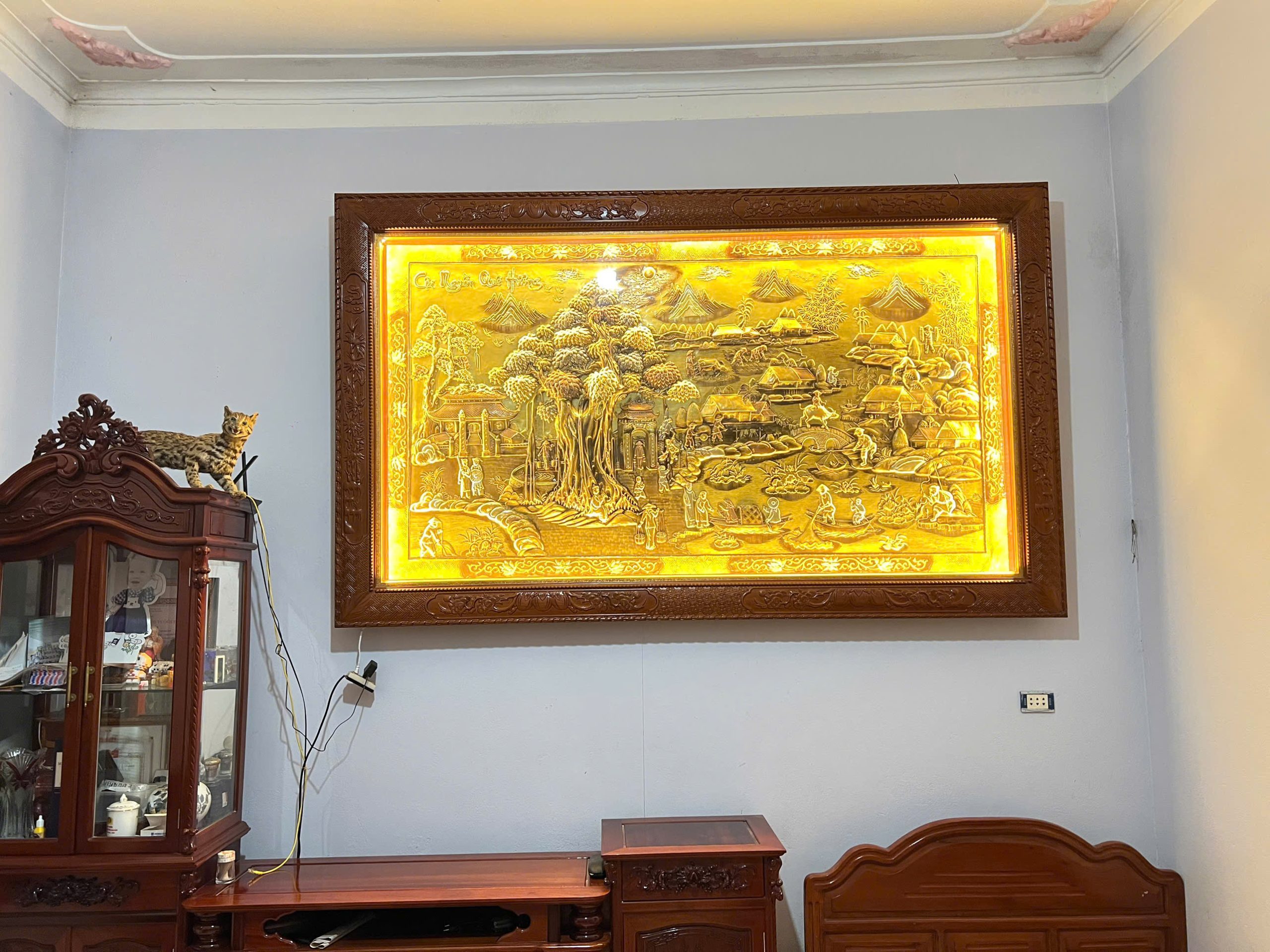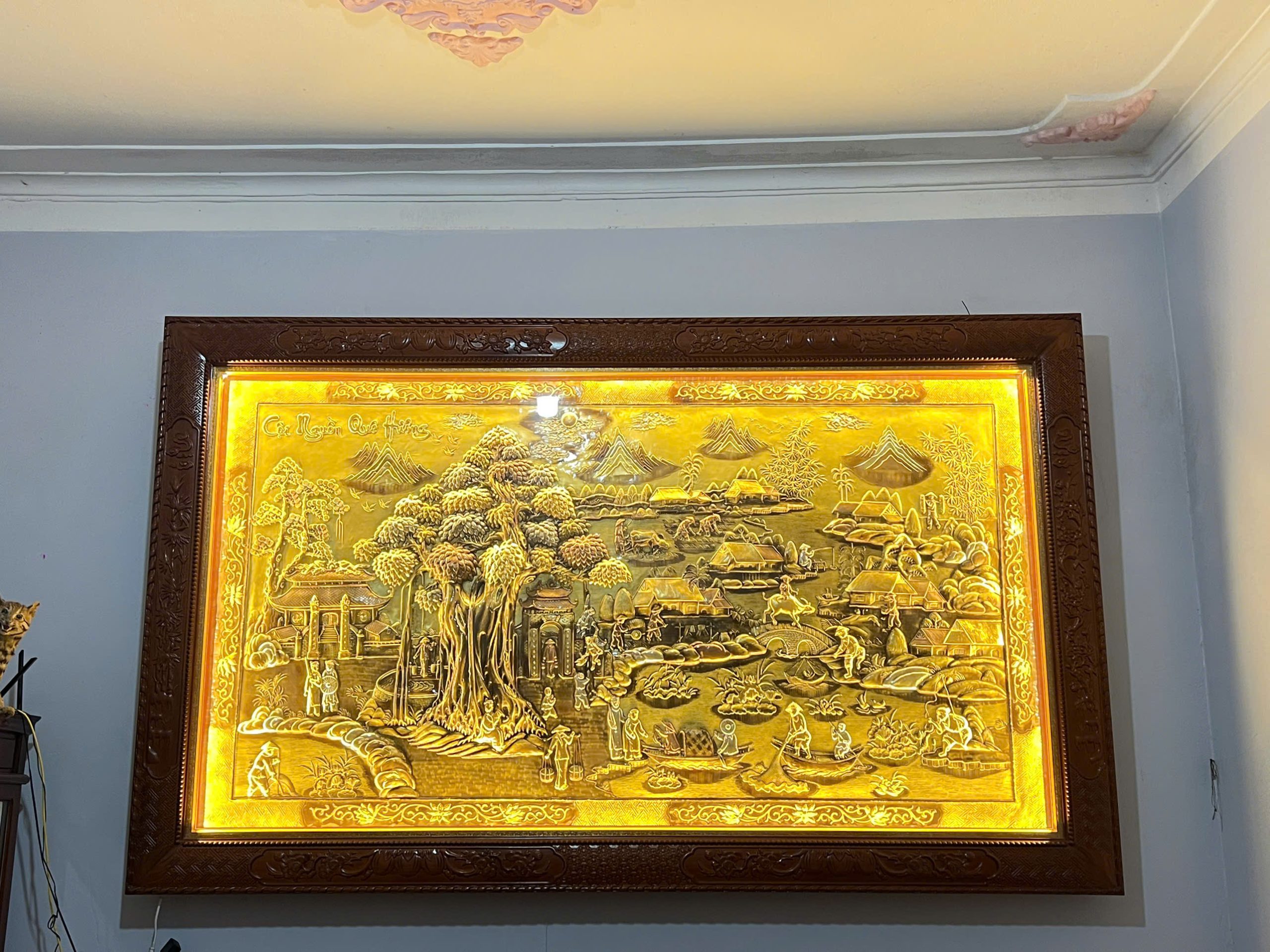 TRANH CỘI NGUỒN QUÊ HƯƠNG 1M55X2M55 ĐÃ BÀN GIAO VÀ LẮP ĐẶT TẠI NHÀ KHÁCH NINH BÌNH